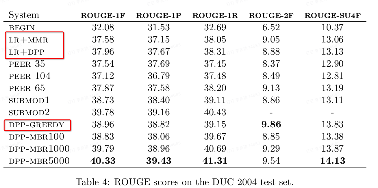 • 而RBF核的DPP用到的embedding只是tf-idf,因为它发现各种NLP/CV/音频embedding效果都不如直接用文本词。感觉真是有点无语哈哈,可能18年的NLP确实不够用。
