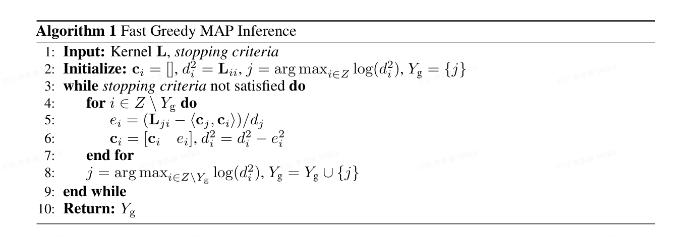 预估算法,输入\(L\)矩阵kernel_matrix,需要的item个数,返回item的索引,