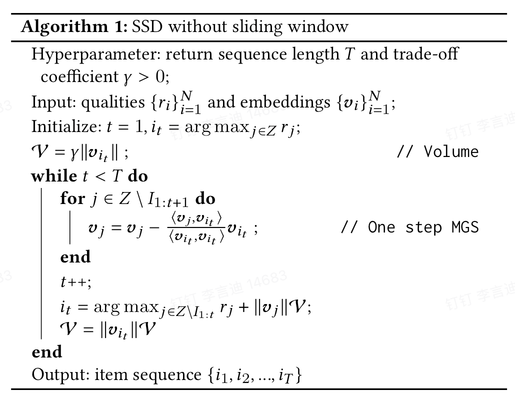 • 算法:为了让物品向量的张成体积最大,不断在剩余物品向量上,进行Gram-Smidt正交化操作,也就是说,每一次把剩余的物品向量都减去之前选出来向量的分向量,看垂直的部分哪个比较大,和分数融合一下,谁大选谁。